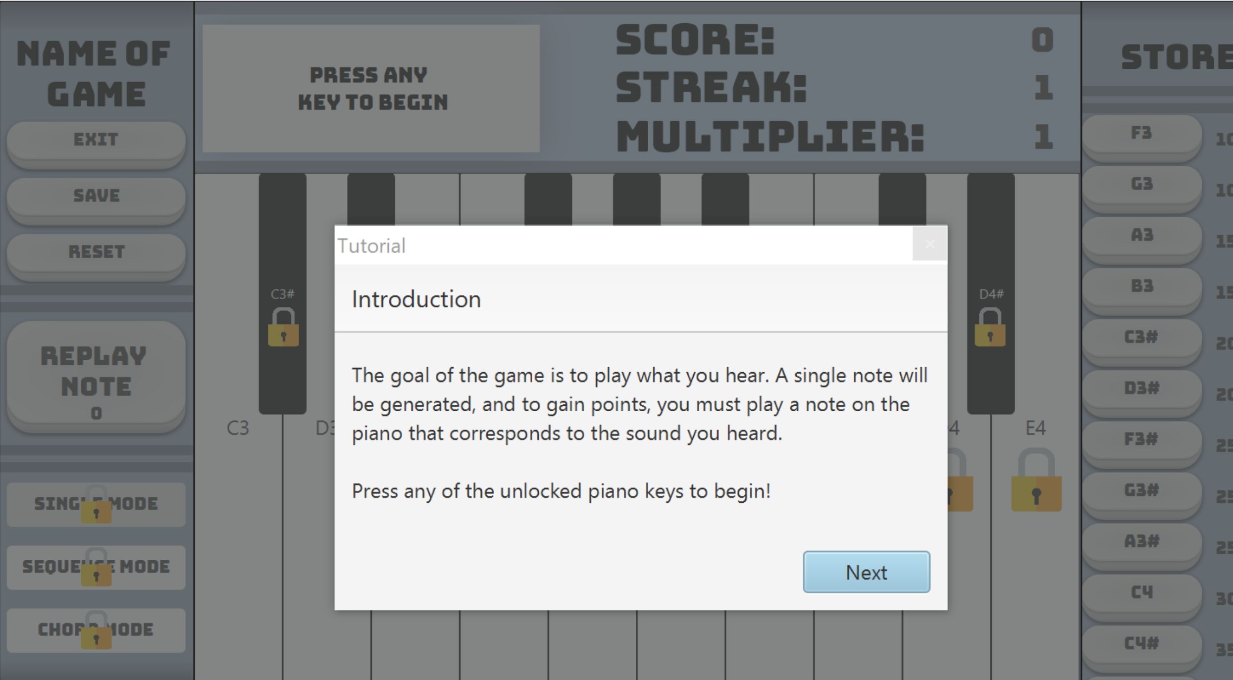 To provide an innovative alternative to traditional music learning, our team developed a game-prototype to teach relative pitch to an audience of both musicians and nonmusicians.